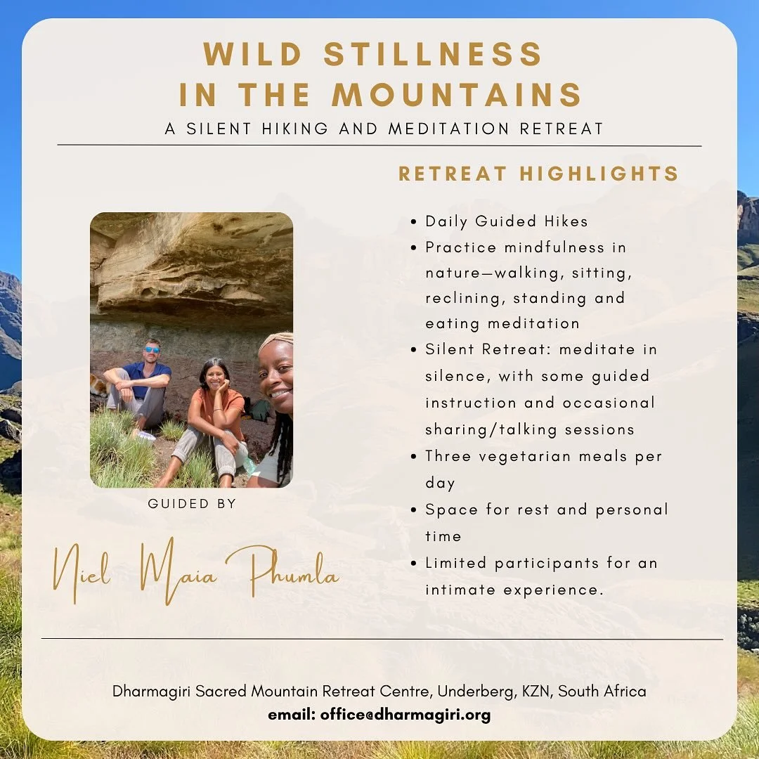 Rooted in the wisdom of Buddhist teachings and the rich traditions of African spirituality, Dharmagiri offers a unique retreat experience that honours both ancient and contemporary practices. Nestled in the heart of the Drakensberg mountains in South Africa, Dharmagiri Sacred Mountain Retreat is a sanctuary for those seeking inner peace, spiritual growth, and a deeper connection with nature. We embrace the cycles of nature, draw inspiration from the ancestors, and cultivate practices that ground us in the present moment.
